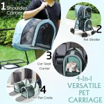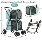 4-in-1 Double Pet Stroller for Dogs and Cats, 2 Detachable Carriers 4 Lockable Wheels, Collapsible
